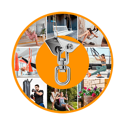 Поворотный механизм позволяет свободно вращаться на 360° без скручивания тросов и верёвок подвесного гамака. Болтовое соединение вертлюга и крепёжной скобы исключает риск деформации вращательного элемента от нагрузки при раскачивании и креплении блока под углом