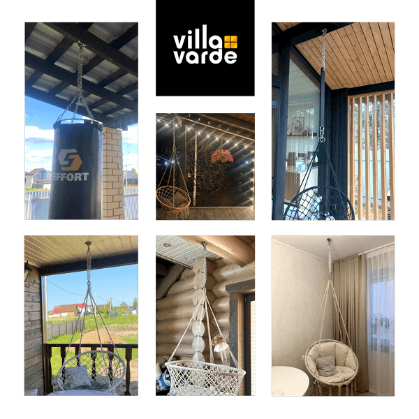 В наборах креплений Villa Varde используется сверхпрочная цепь с коротким звеном из нержавеющей стали. Диаметр прутка 5 мм, а максимально допустимая нагрузка 300 кг. Это на 35% выше, чем в более дешёвых аналогах креплений, где используется 4 мм цепь