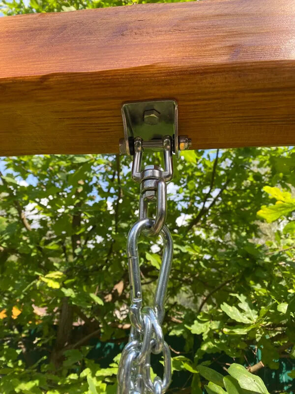 Высота крепления легко регулируется благодаря возможности соединения s-крюка/карабина с цепью в нужном звене.